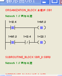 按2樓圖,接通I0.4,M1.0、Q0.1接通;斷開I0.4,第1個掃描周期時,這時的M1.0仍是接通的,又I0.4的常閉點接通,故M1.0保持接通,Q0.1還是接通。 |