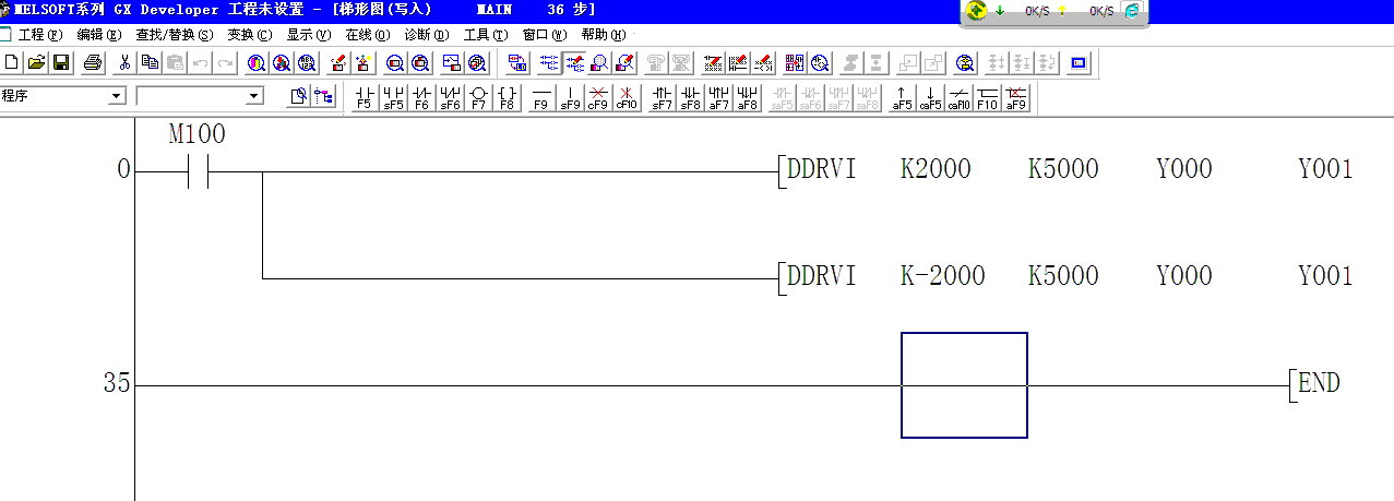 程序中還要用到特殊繼電器M8029,M8029正常完成標志位。當所需的脈沖發完后對DRVI進行監控。