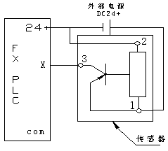 三菱 FX系列PLC對(duì)大陸銷售的交流電源供電的型號(hào)后面都帶有001,這款PLC在接輸入信號(hào)時(shí)一般都是接NPN信號(hào)。也經(jīng)常看到PLC的使用者在詢問能不能接PNP信號(hào),如果能接應(yīng)該怎么接,其實(shí)在接PNP信號(hào)時(shí)也是可以的。只不過是接電路要更改一下。 三菱 FX-PLC 的輸入端子既可以接受電流輸入也可接受電流輸出的連接方式,(即 FX-PLC 的輸入端子既可作為漏型輸入也可作為源型輸入連接)關(guān)鍵要掌握接線方式。具體接線方式按下述: NPN 型接近開關(guān)接成漏型輸入方式,只需將接近開關(guān)的開關(guān)輸出端子( + )接入 PLC 的輸入端子,接近開關(guān)的另一端子(—)接 PLC 的 COM 端。 PNP 型接近開關(guān)接成源型輸入,則應(yīng)把 PLC 的 24V+ 端子接外部電源的負(fù)極,外部電源的正極接接近開關(guān)的( + )端子,接近開關(guān)的另一端(—)則接 PLC 的輸入端子。 (一)NPN 型傳感器連接示意圖: ![]() (二)PNP 型傳感器連接示意圖: ![]() |