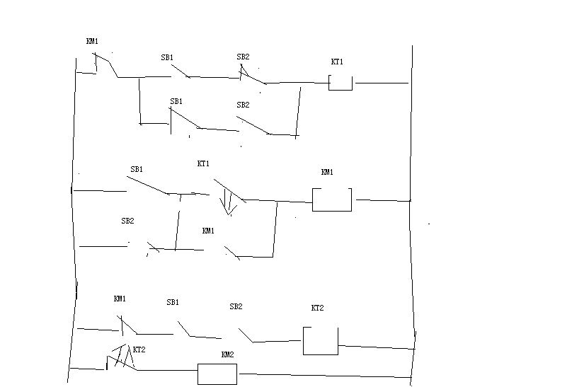 控制要求:雙手同時在0.5S內同時按下按鈕,輸出電磁閥,通過另一個時間繼電器控制輸出電磁閥的時間。目前我要用到的時間繼電器是2個,中間繼電器3個,按鈕2個來控制