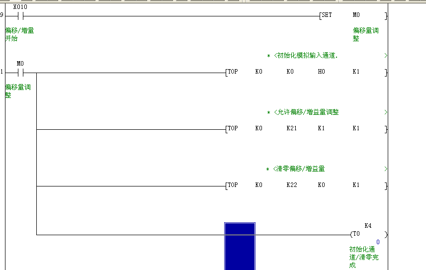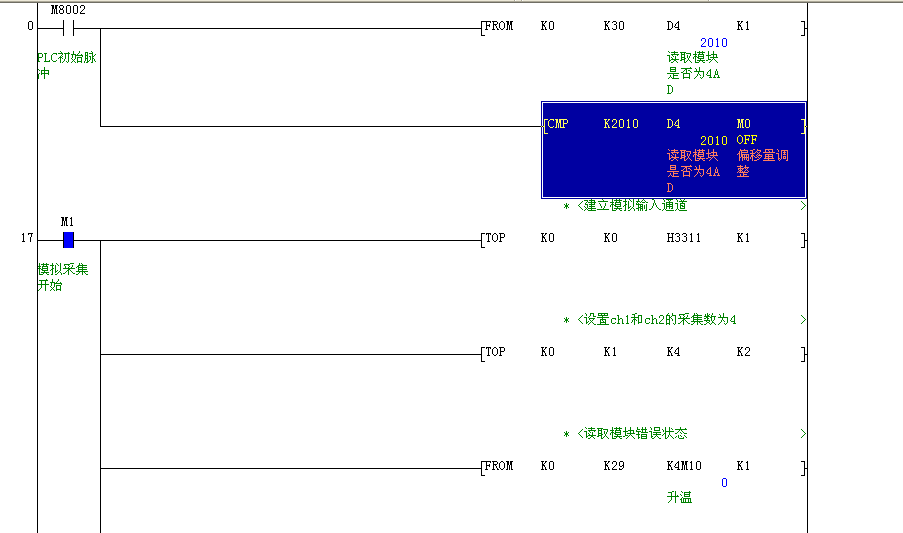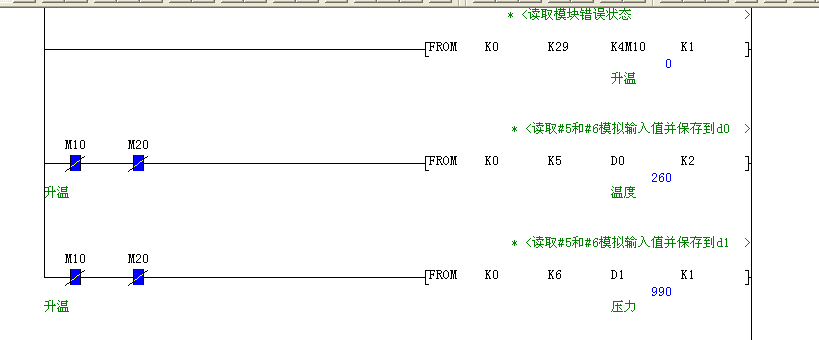 PLC是三菱fx2n 32mr的模擬量轉換模塊是4AD與4DA。 壓力變送器是順來達的SLDYB-2088量程為-0.1~0 電流輸入為4~20ma;溫度變送器用的是導軌式溫度變送器量程0~100攝氏度電流輸入為4~20ma分度號是pt100。