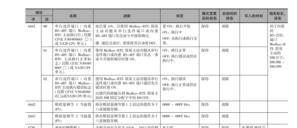 歐姆龍CP1E手冊里面的模擬量調節器A642、A643的模式變更狀態保存和啟動時狀態清除是什么意思呀,求大神幫我解釋下。。