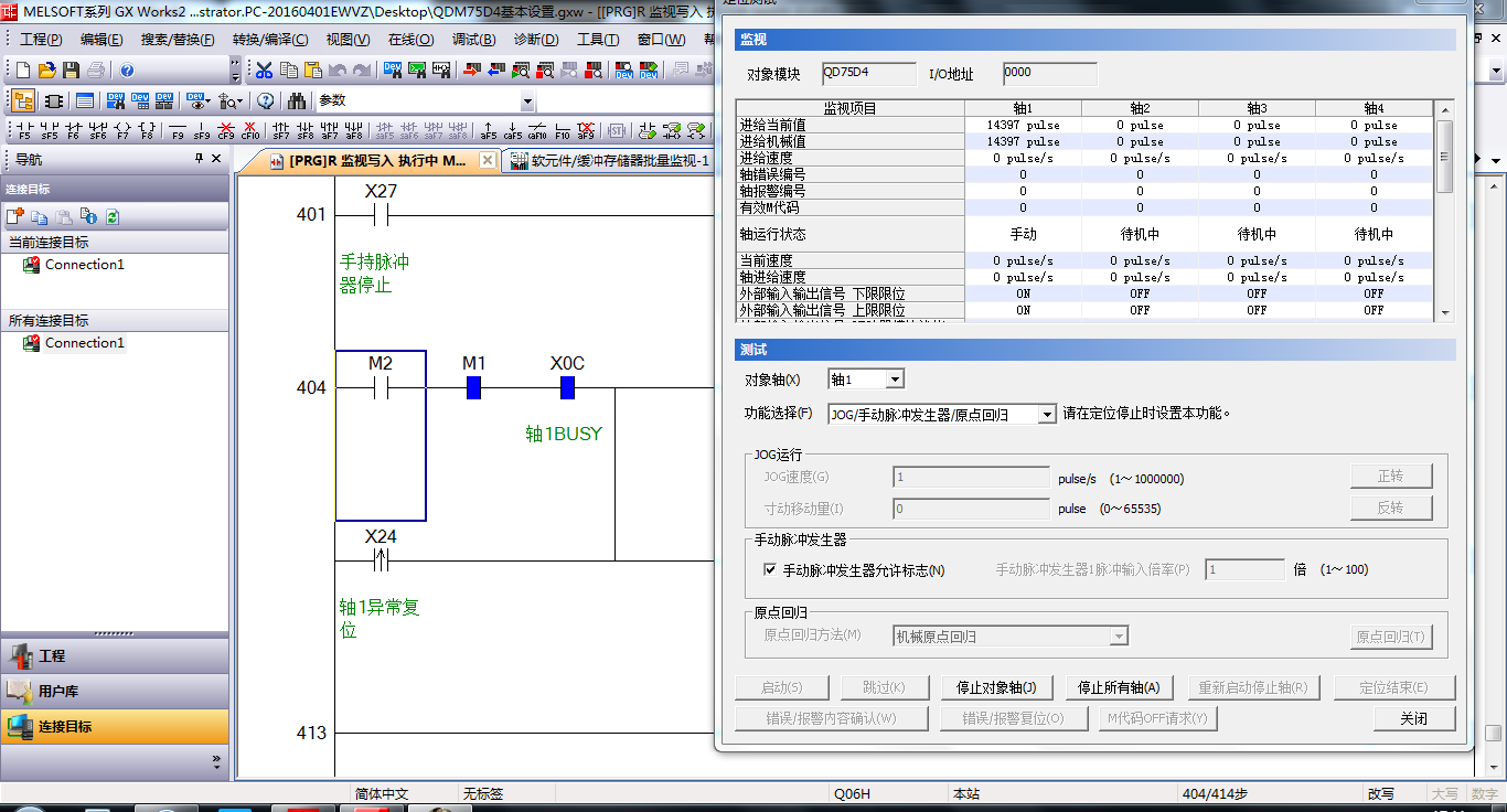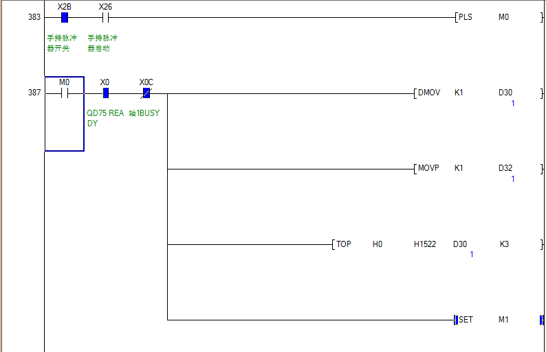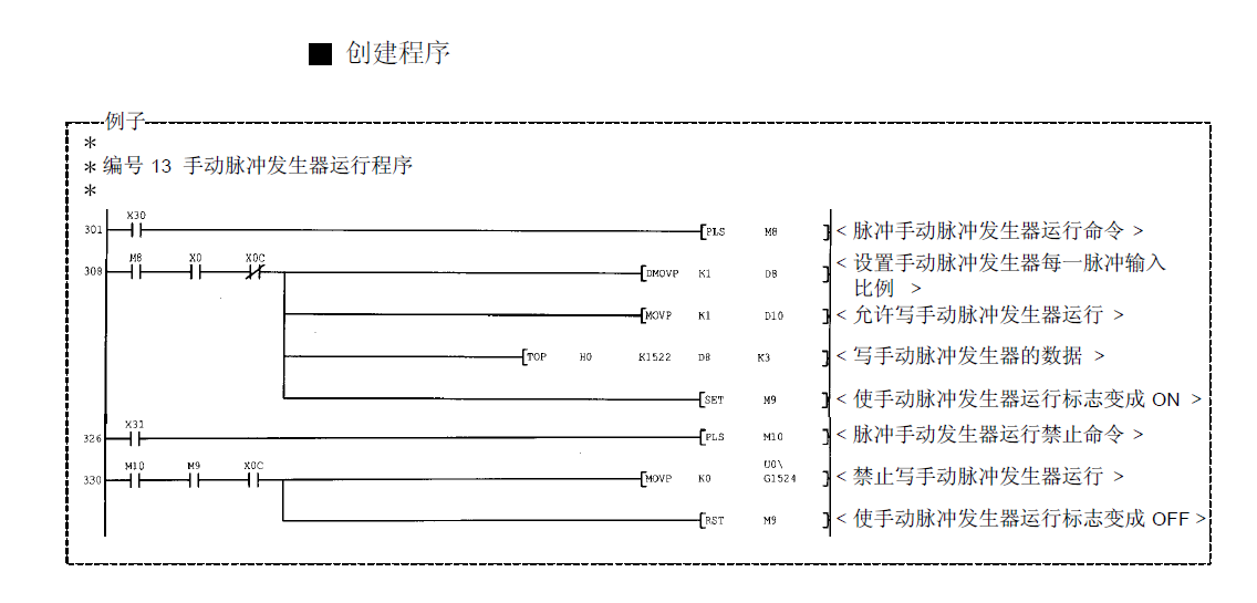 QD75D4定位模塊,現(xiàn)在JOG  OK,定位 OK,   OPR  OK,就是照教程寫的手持脈沖器的程序不行,但是用智能模塊的定位測試中的手持脈沖器又可以運(yùn)行,請教高人這是什么問題。