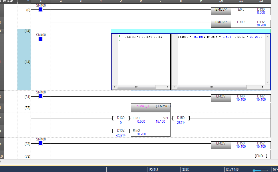 如圖,FX5U插入ST框,如何指定各軟件的類型為浮點型?