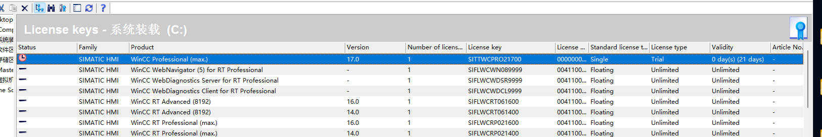 博圖V17 WINCC忽然就壁燈了;最后只有安裝22-11的授權才行;不知道為什么會這樣
