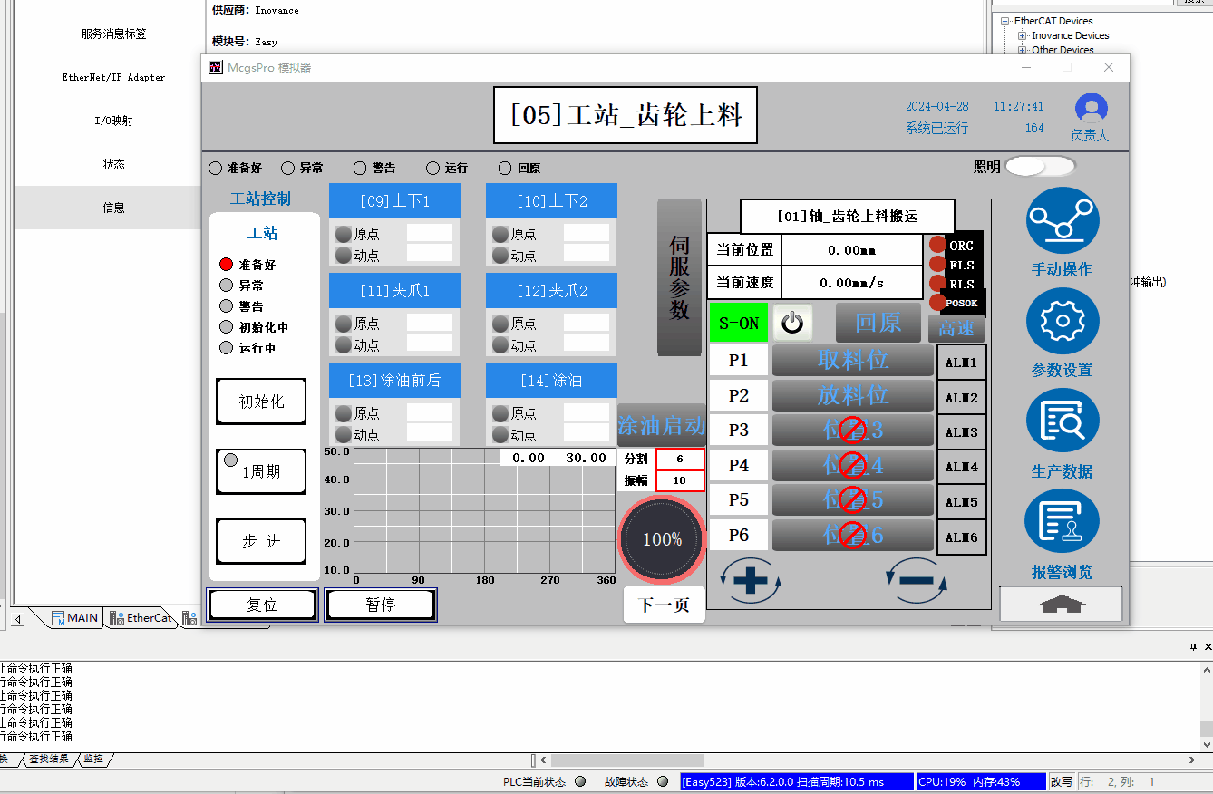 1度,可以生成一個對應(yīng)的Y,這樣用FOR循環(huán)的指令可以自動生成360個對應(yīng)的Y,形成了360個凸輪表數(shù)據(jù)。凸輪行程量可以設(shè)為