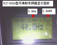 實(shí)際水壓壓力只要0.55MPa就可,改成變頻器控制,查看面板的參數(shù)發(fā)現(xiàn)運(yùn)行在44HZ時(shí)電流顯示為5.98A,功率為2.60KW
