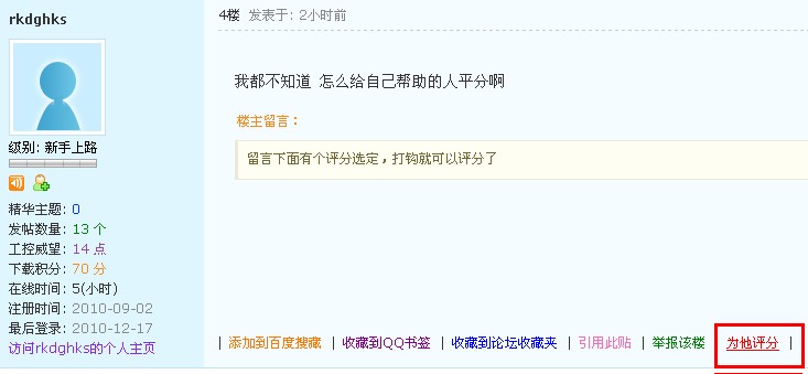 工控人家園中,評(píng)分不扣分,我看到好多人提問后,別人幫解決了,都不給評(píng)分,我覺得不厚道。