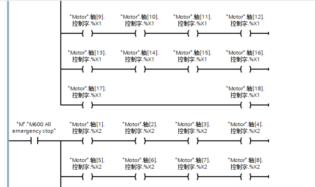 我猜,這些位前面用了急停按鈕,我估計是使能或是停止的