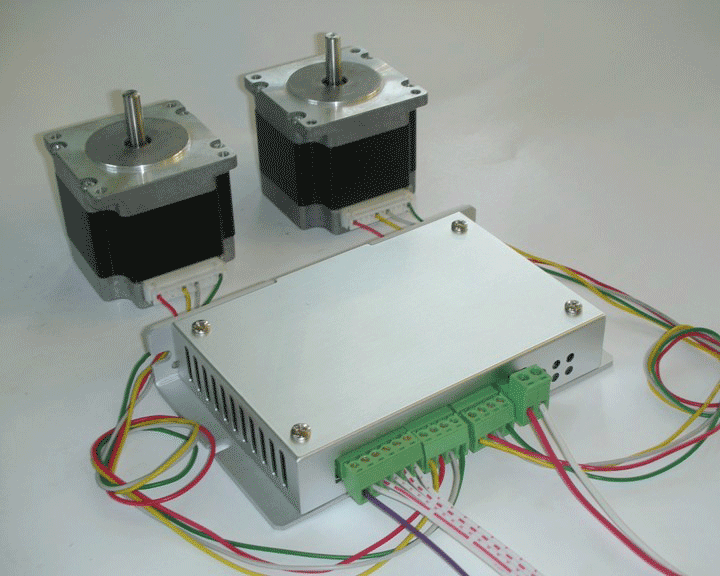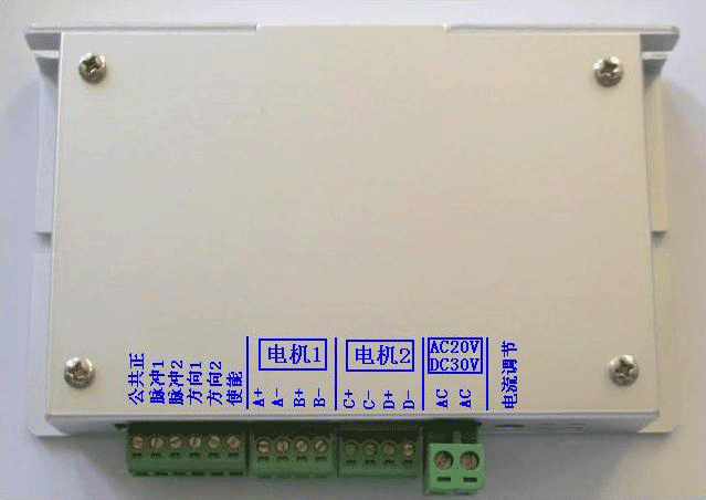 此款雙軸步進電機驅動器適于同時驅動兩臺42步進電機,單臺電機運轉電流為0.5A-1.5A,最大16細分,可輸入交流或直流電源(AC10-20V或DC12-30V)。