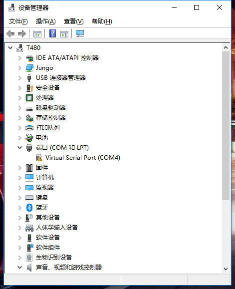 win10 64位家庭版  用EBpro進(jìn)行以太網(wǎng)穿透設(shè)置后 設(shè)備管理器 里的Virtual Serial Port COM4 始終有個(gè)感嘆號(hào)標(biāo)志 實(shí)際聯(lián)機(jī)顯示端口不存在
