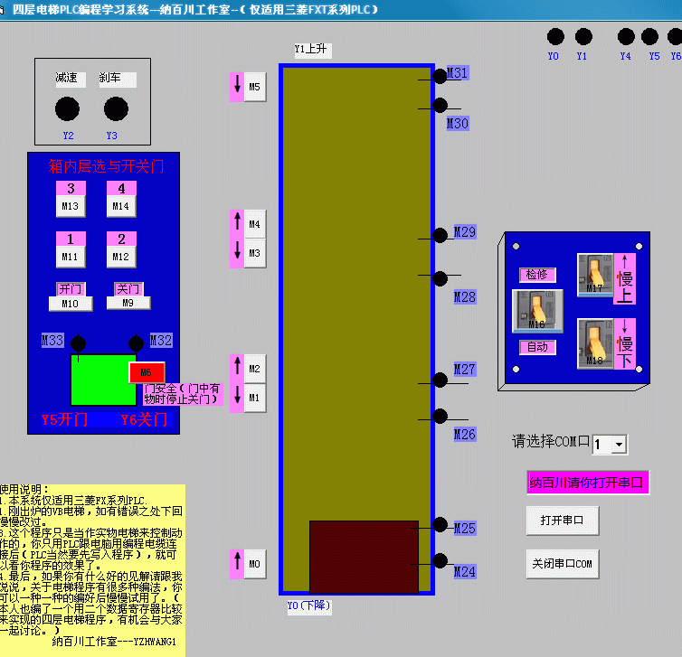 我在介面上各個(gè)位置和相就的開(kāi)關(guān)都注明了M0-M30還有Y0-Y6的功能都是清楚說(shuō)明了的