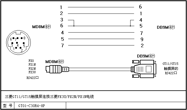 請教與FX系列PLC連接可以用 GT01-C30R4-8P 接線圖