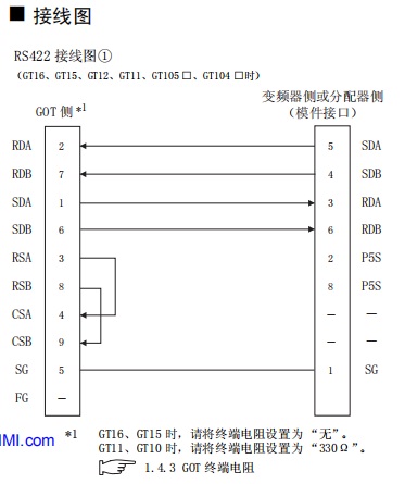 想請教另外一個問題,三菱的觸摸屏422接口需要接SDA SDB RDA RDB 而臺達VFD-M變頻器485接口只有SG- 和SG+ , 是否可以將三菱觸摸屏422接口的SDA和RDA , SDB和RDB,兩組短接后接 SG-和SG+  ?