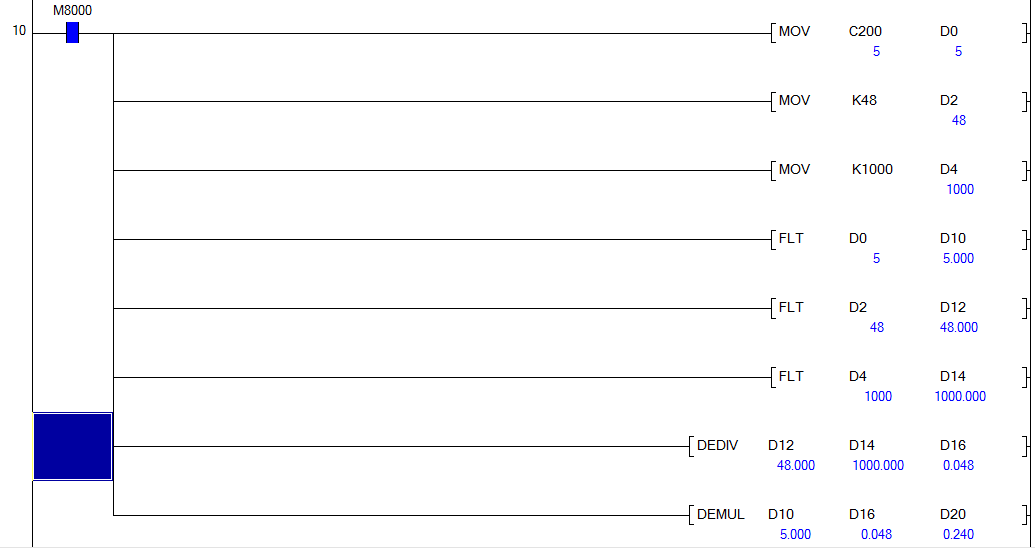 引用樓主劉偉哥于2020-03-29 19:38發表的 求助FX2N帶小數點的乘除法運算 :