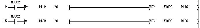 當D110=0;D111=1或其他非0值;D120=0;D121=1或其他非0值時,第一條指令條件不滿足,第二條滿足。