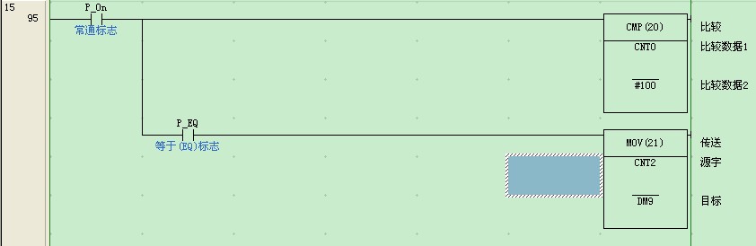 當計數器C0的當前值等于100的時候,傳送計數器C2的當前值到寄存器DM9中。