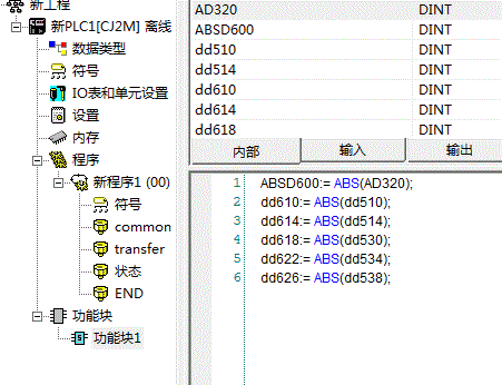PLC的功能塊都差不多啊,歐姆龍功能塊可以用結構文本和梯形圖編寫,你這個就是結構文本寫的求絕對值