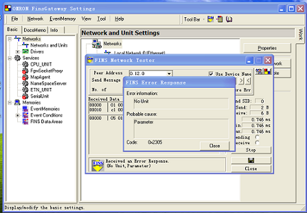 我用Finsgetway 軟件測試工控機與PLC網絡通訊,但報了一個警:no unit(沒單元)!!謝謝