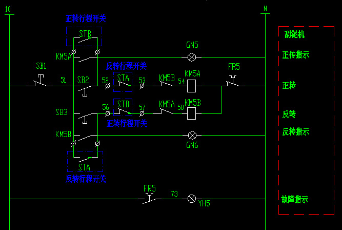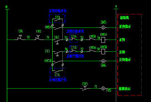 我問一下,你在按下stop后,接觸器是否斷開,正反轉指示燈是否還亮著?從圖上看是不管你的正反轉控制電路是否正確,只要按下stop后,故障指示燈都應該會亮,也就是熱繼常開只要通就應該會亮,故障指示燈回路與你的控制系統沒有關系,你說把熱繼換過之后就可以實現了,我覺得是原來你的故障指示燈回路線沒有接好或接觸不良! 以上只是個人見解.