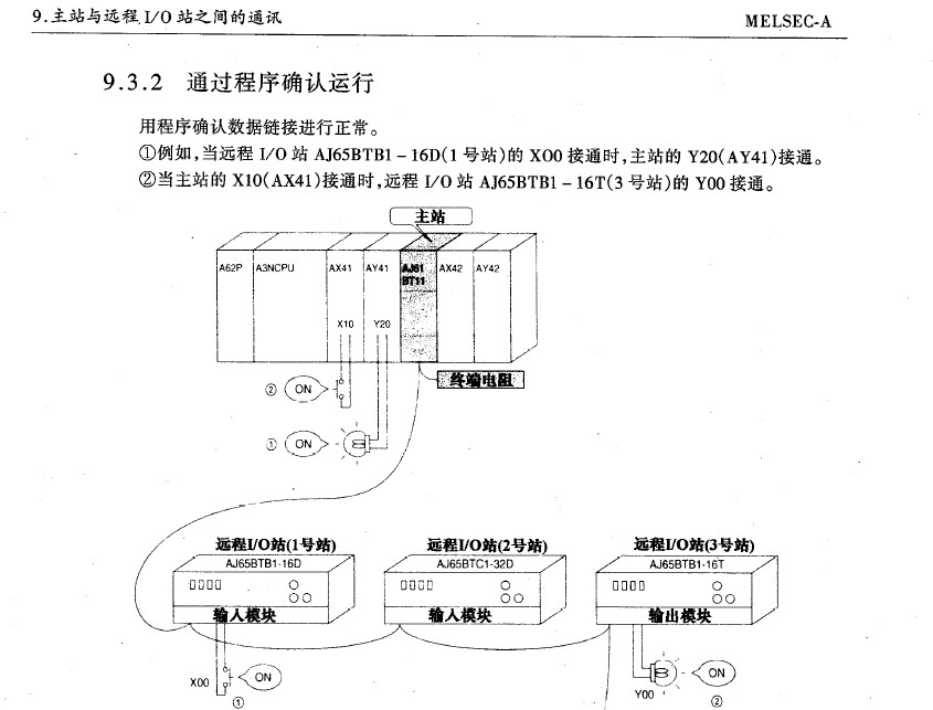 引用引用樓主huangliangl于2011-05-09 11:39發表的 三菱A主系列主站與遠程I/O站的通信中的(AY41)和(AX41) : 三菱A系列主站模塊A1SJ61BT113與遠程I/O站的通信,請問圖片中主站的Y20(AY41)接通,X10(AX41)接通,其中的AY41和AX41值得是什么,,謝謝……