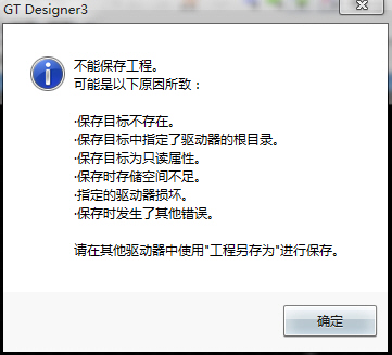 請在其他驅(qū)動器中使用"工程另存為"進(jìn)行保存。”