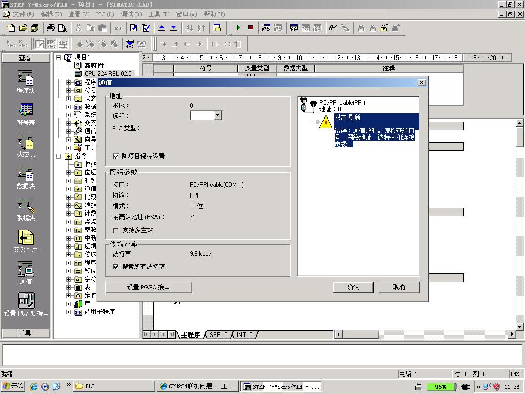 求教,CPU224  6ES7 214-1AD23-0XB0 Made in Germany,和我的電腦聯機時找不到地址,使用的是原裝PPI電纜6ES7 901-3CB30-0XA0 ,通信選項選的是全波特率,和另一臺CPU224 CN通訊正常。疑問通訊時為什么只搜索9.6和19.2兩個波段,機器上使用的也是原裝PPI電纜和電腦通訊,為什么我拿電腦去就連不上?