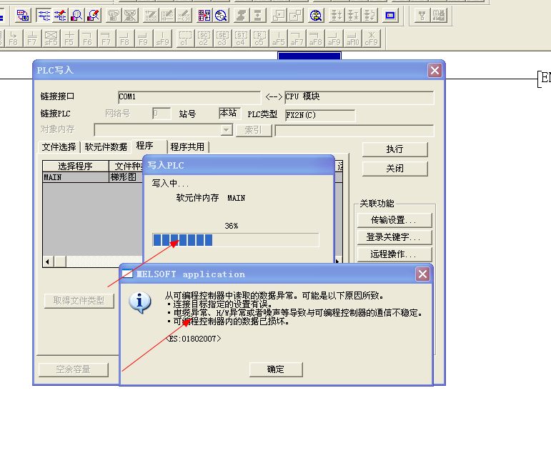 是編程電纜線有問題,我也遇到15%失敗了,不過我用的是GX Developer8.86來,我換了一條電纜可以了。
