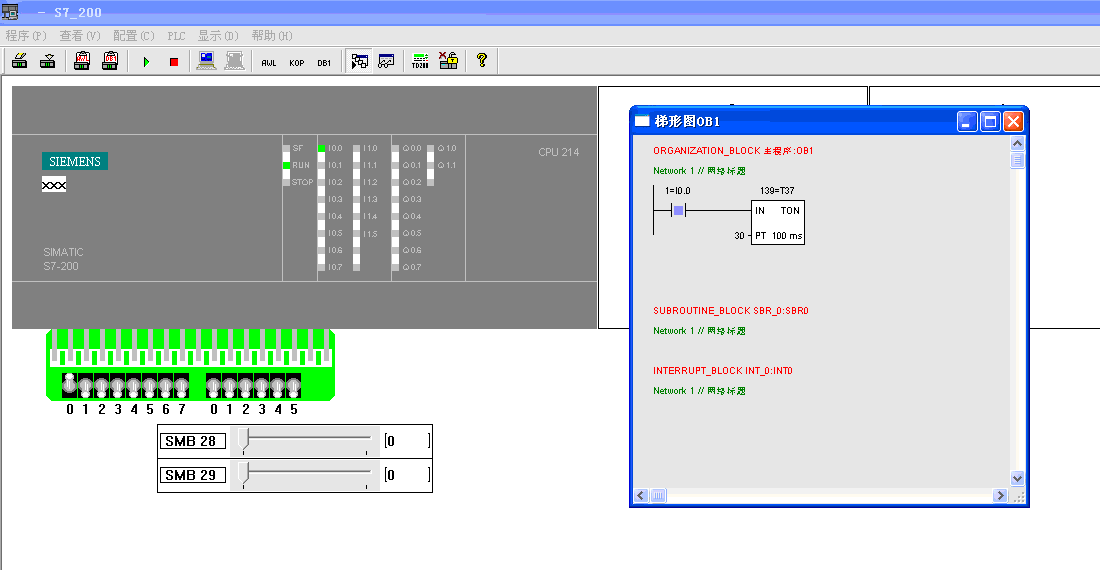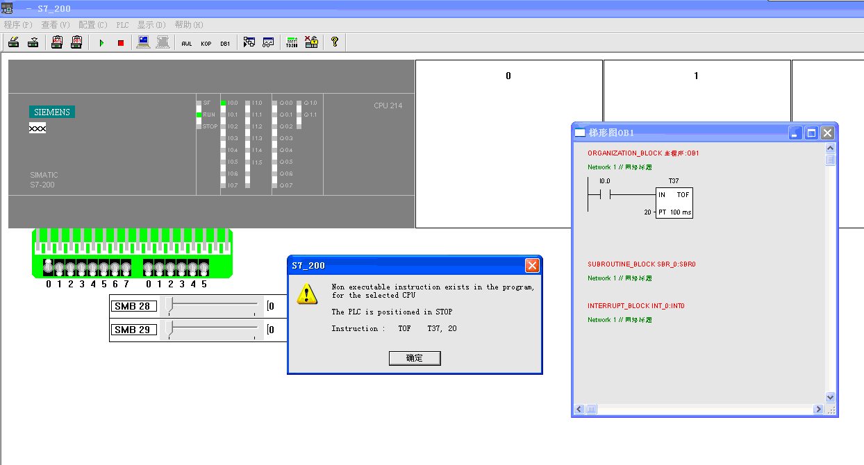 梯形圖一樣,只是將定時(shí)器由TON改成了TOF,仿真就行不通了,出現(xiàn)如下圖的畫(huà)面