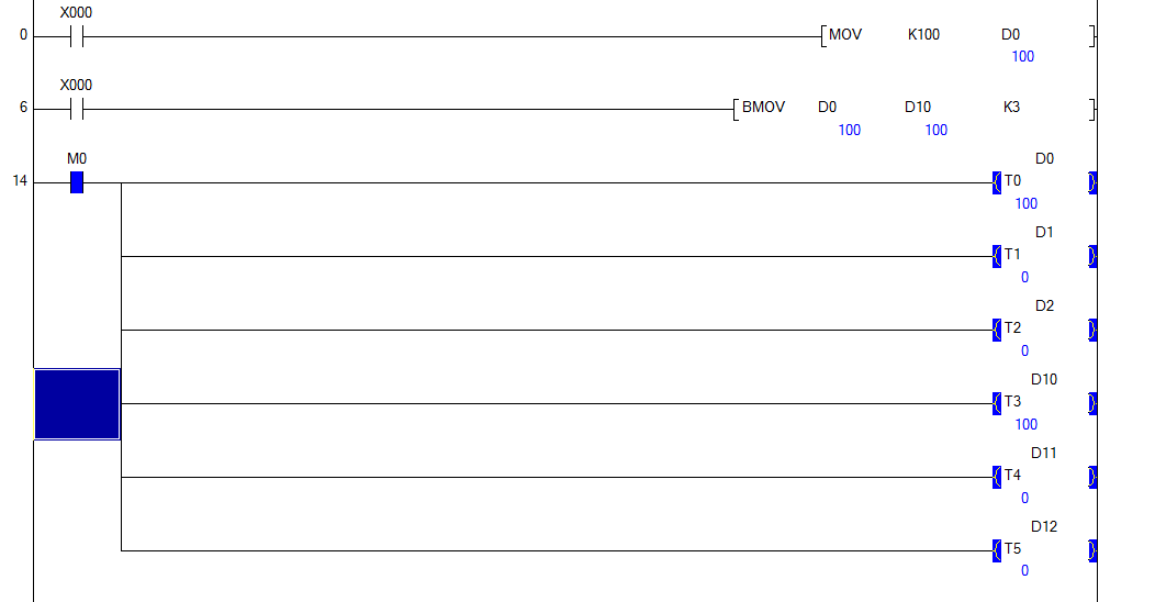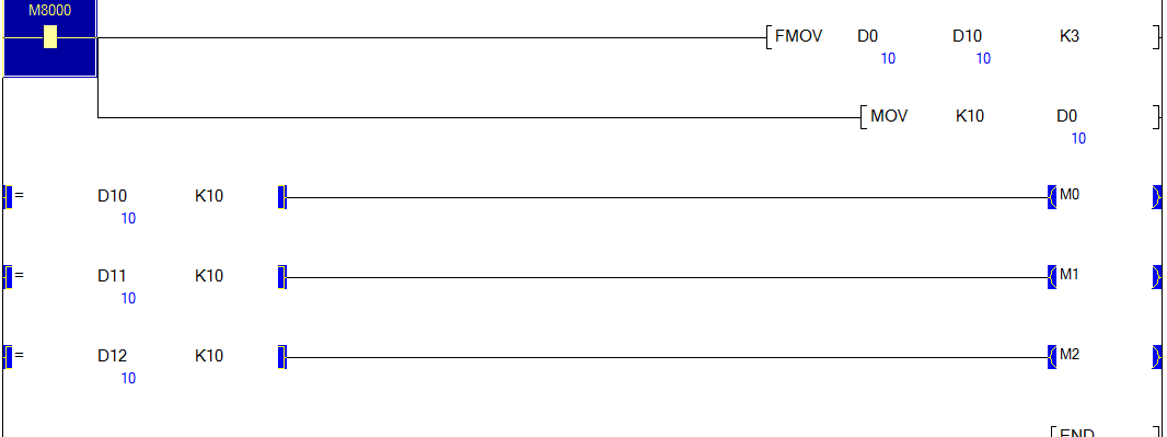 三菱 BMOV 指令  BMOV D0 D10 K3 如圖 為什么D1 D2 D11 D12沒有呢?