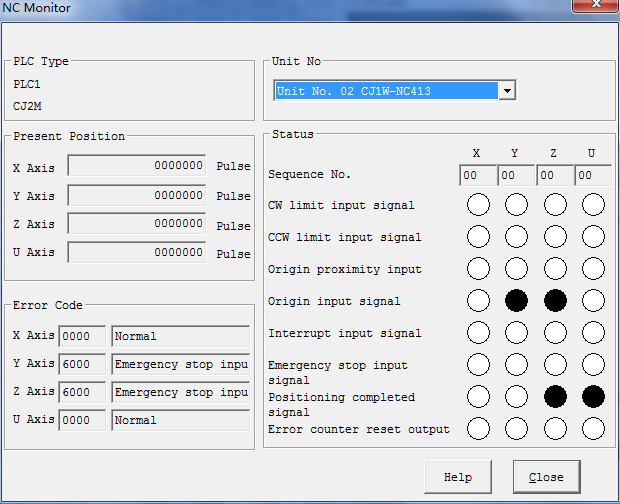 還有一點很奇怪,CX-POSITION監控里(見附圖),圓圈那顯示的是已經接入了(如果沒接是紅色圈),但左側報警依然顯示有錯誤碼6000,運行時PLC內程序監控是沒有接入。