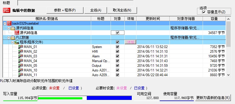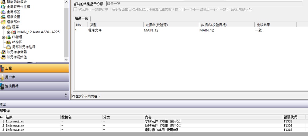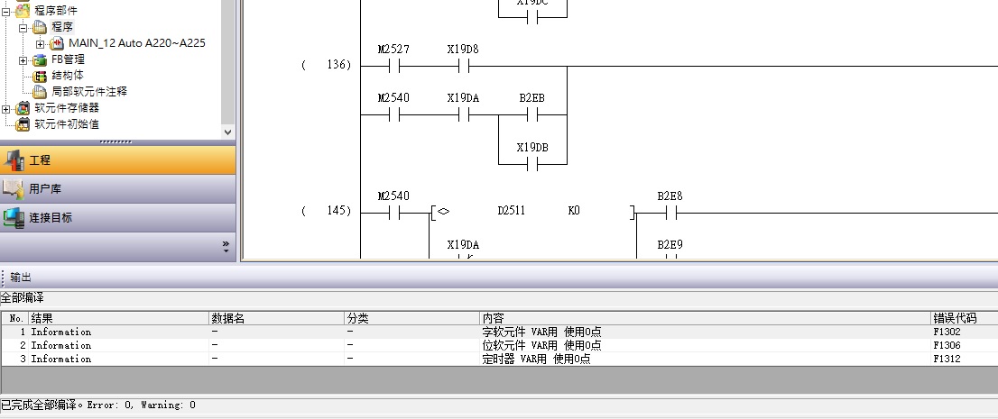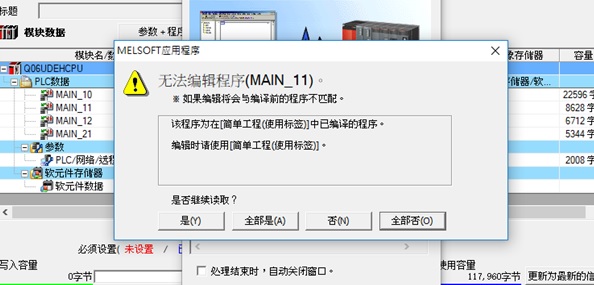 程序是用了標(biāo)簽功能。程序沒有將最后一次完整的編譯信息寫入PLC。先讀出帶標(biāo)簽的編譯信息,再另新建一個(gè)不帶標(biāo)簽的讀出梯形圖,可兩個(gè)融合起來。