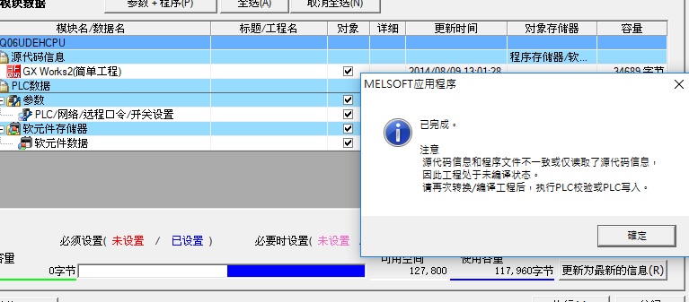 plc cpu型號為Q06UDEH,軟件為gx works2 1.536j.