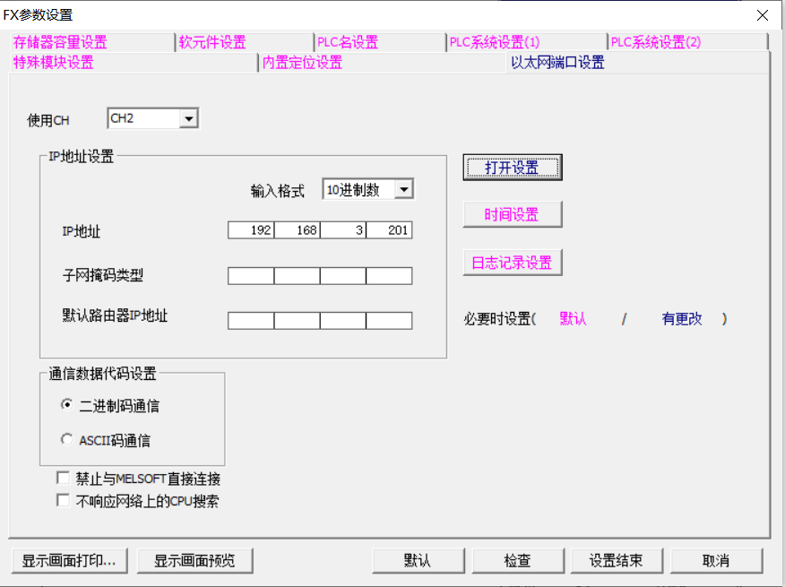 現在我想將CNV換成422BD,按理說有CH1和CH2通道應該可以,就將ENET的設置為CH2,這樣的話,目前work2可以通過ENET監控到程序,但是插上422BD的數據線就怎么也連不上,將其設置為CH1的話,具體怎么設置?