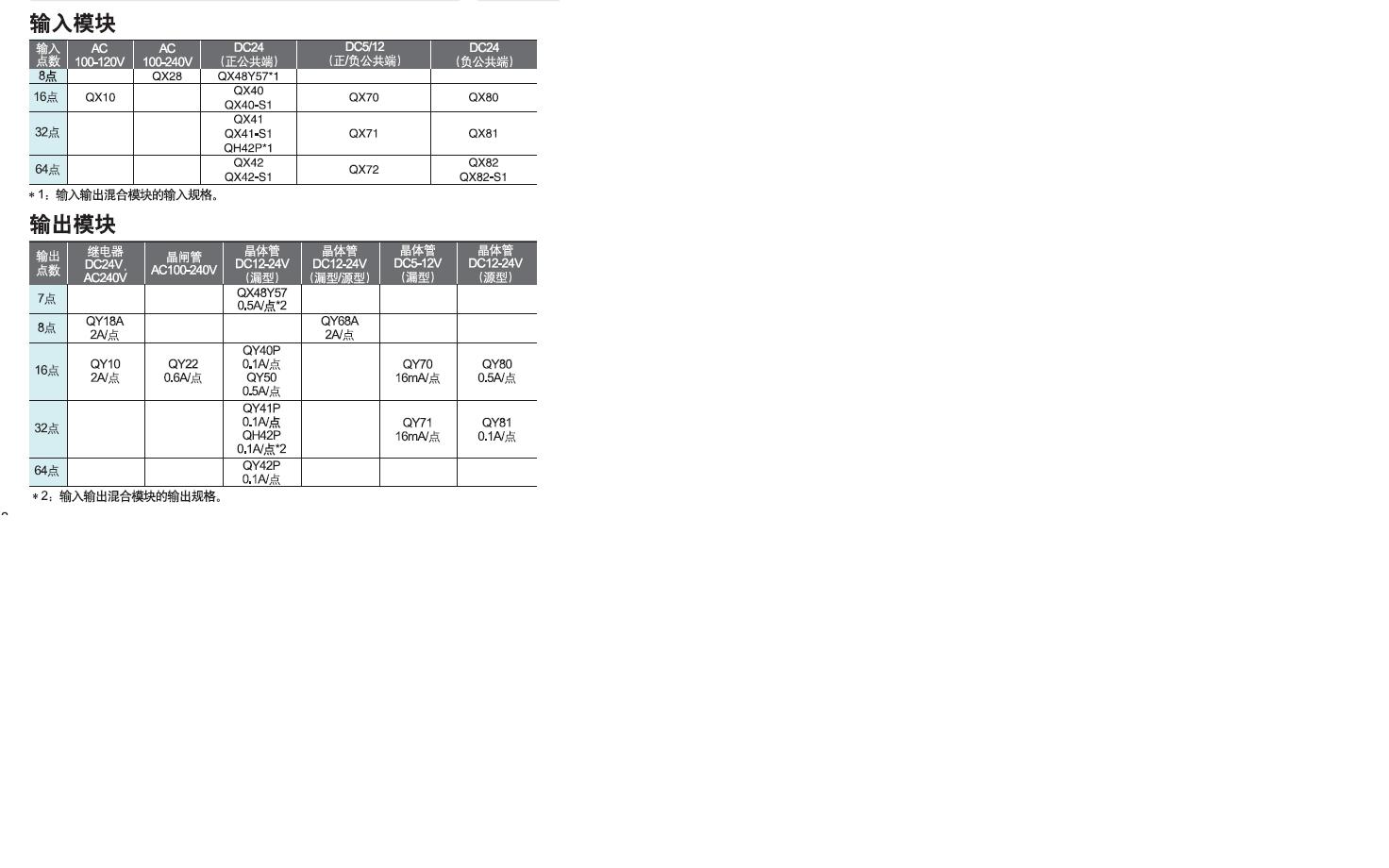 對(duì)應(yīng)模塊點(diǎn)數(shù),*介紹的為混合模塊