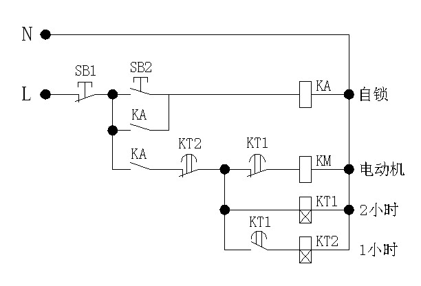 用一個(gè)微電腦時(shí)間繼電器,24小時(shí)可控制的那種,具體型號(hào)不記得了。設(shè)置好控制時(shí)間就行,用它來控制電動(dòng)機(jī)的運(yùn)轉(zhuǎn)電路。