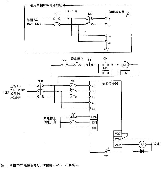 請問個高人三菱MR-J2S-20A的驅動器上的電源端L1  L2  L3怎么接線。而上面的說明是220-280V的電源,不知怎么接線。請大家指點。謝謝!