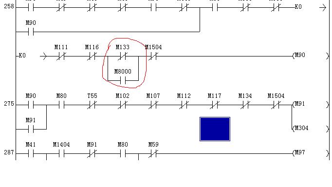 2圖疑惑:既然M8000是上電運行后常ON觸點,你還將其他觸點與之并聯,又意義何在呢?