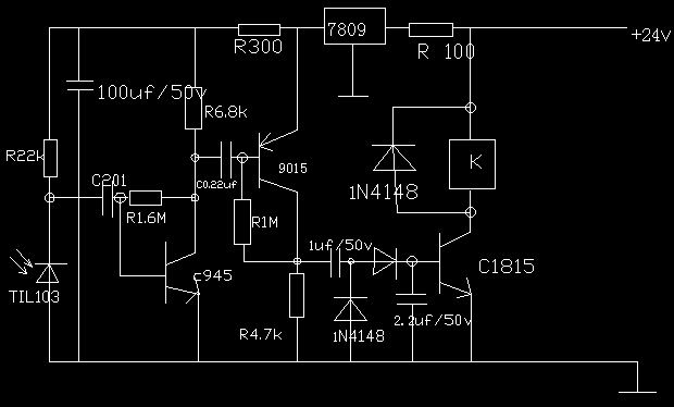 要求是:1)供電電壓是24v           2)當紅外線接收管接收到紅外光時能夠驅動一個24伏繼電器閉合