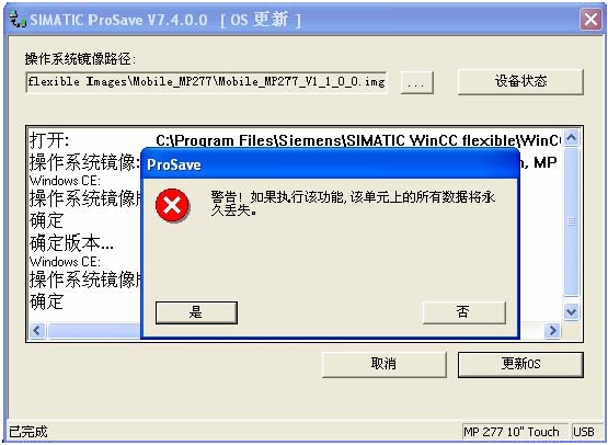 使用以太網進行通訊,能連接上,讀后就(顯示無法備份該操作系統鏡像)。prosave軟件版本V7.4.0.0