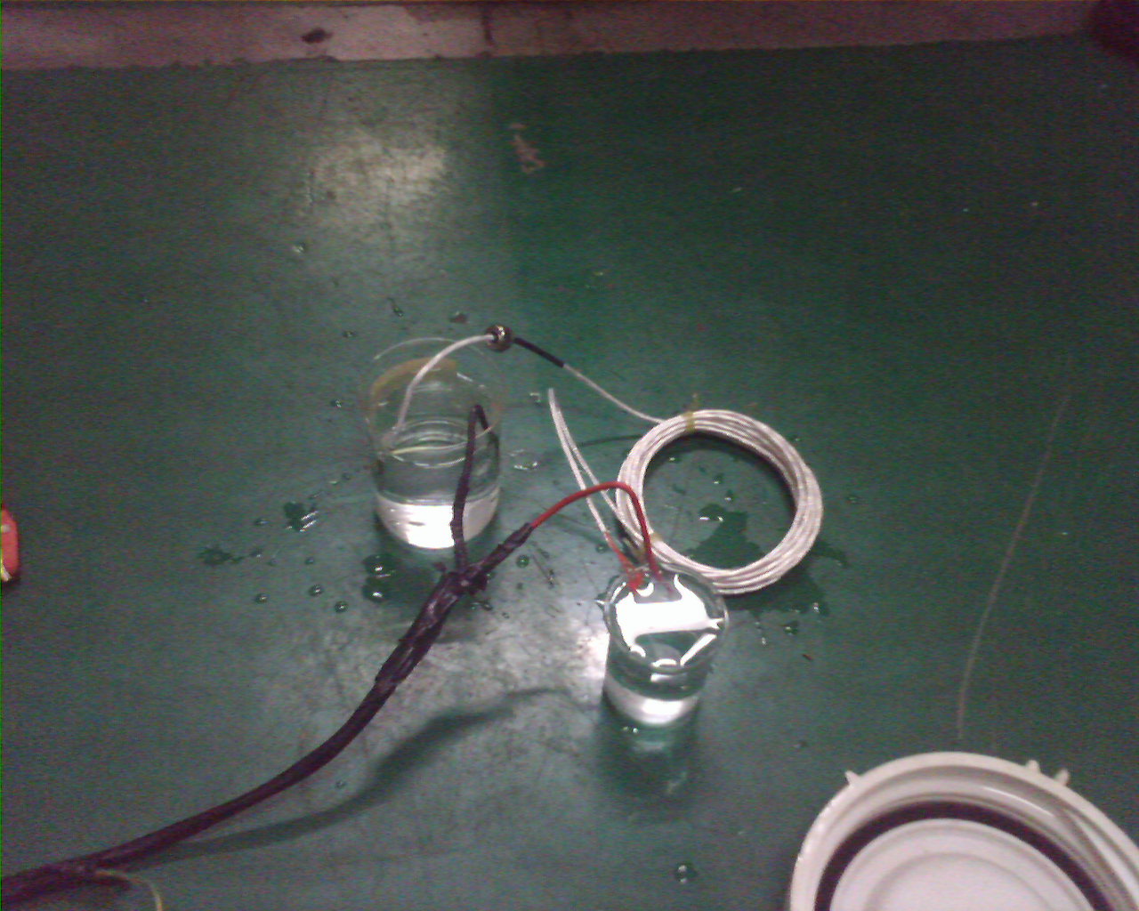 B、升壓過猛,在離實驗電壓最近處(感應器的感應頭浸泡到其中一杯水里面,而三根信號線則浸泡到另外一杯水里面,然后給這兩杯水施加1500VAC/50Hz 1min)發生擊穿。