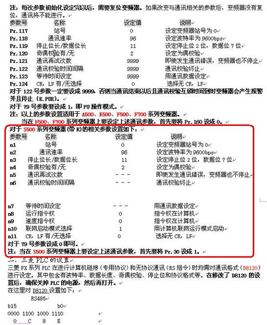 引用引用第7樓yuehuasheji于2010-04-26 15:07發表的 :回復第一是變頻器通訊參數設置,第二是簡單的通訊格式,沒有頭碼和讀取、寫入命令,對應的變頻器輸入地址是怎么來的,是參數的十六進制碼還是什么,謝謝!
