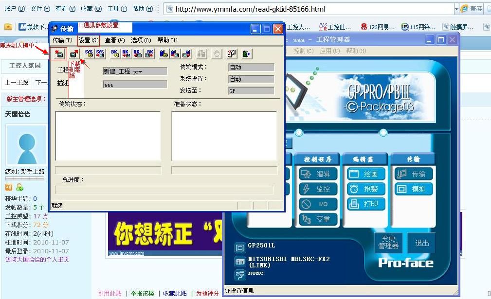 引用引用樓主天國恰恰于2010-11-07 13:00發(fā)表的 GP-PRO-PBⅢ 如何下載畫面到電腦 : 請問各位前輩高手 我程式打開 傳送 這按鈕是反白的 我該如何做才能從人機把畫面?zhèn)鞯诫娔X 把人機畫面?zhèn)鞯诫娔X是按 接收畫面 還是 傳送畫面