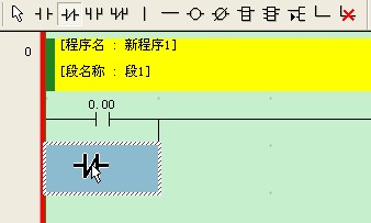 如果要在梯形圖第二行的行首輸入常開觸點01000,可以用復制和粘貼命令來完成。輸入定時器線圈時,可用鼠標單擊工具條中的“指令盒”按鈕,并點擊第二行右邊的空白處。