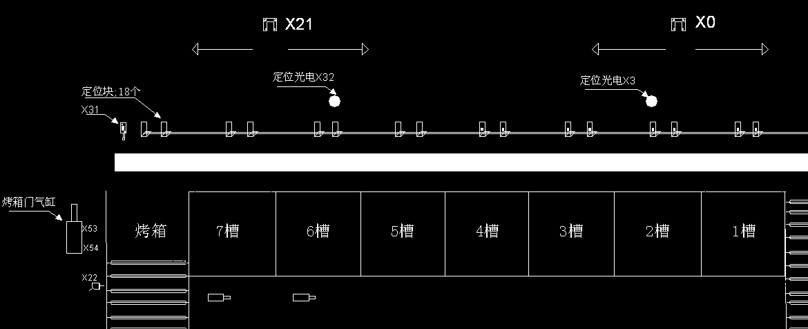 8槽,2個(gè)機(jī)械手,每個(gè)機(jī)械手裝一個(gè)U型開(kāi)關(guān)(X0 X21),移動(dòng)時(shí)檢測(cè)定位塊來(lái)定位。可以工作,但感覺(jué)對(duì)操作者的熟練程度要求較高,想重新用編碼器,但擔(dān)心堵轉(zhuǎn)或跳齒。不知各位有什么好方法