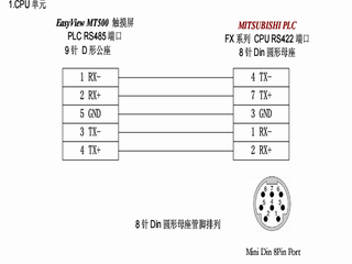 看一下以下維倫屏與三菱PLC連線圖