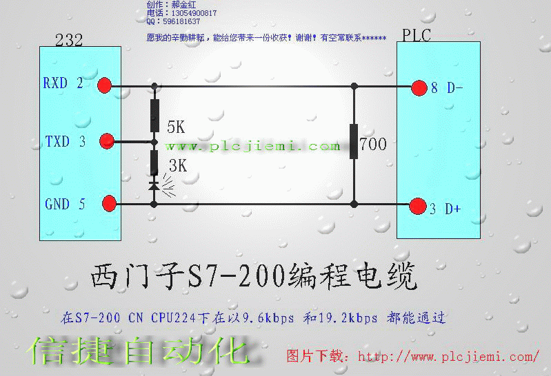 引用引用樓主jiayuanfu于2008-03-15 02:14發表的 100%能用的西門子S7-200編程電纜 :西門子S7-200編程電纜100%能用,絕對無損壞電腦和PLC,本人長期使用未出現過問題。安全可靠。(注:681是電阻,它的阻值是680歐姆;682是電阻,它的阻值是6.8K) [attachment=5563]