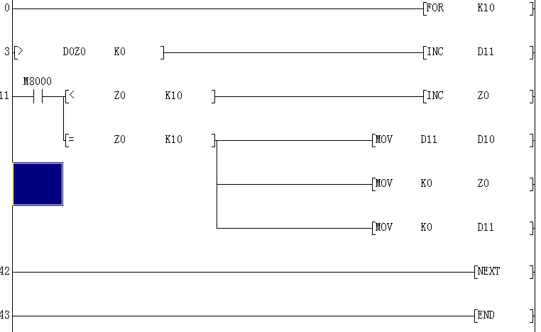 題目如下:用FX-1N系列,求D0-D9中的數據大于0的個數,求出的個數送到D10中去。(D0到D10中的參數是觸摸屏給定的,范圍在0到9之間)FX-1N中沒有SUM,求ON指令。大家有沒有好的辦法。