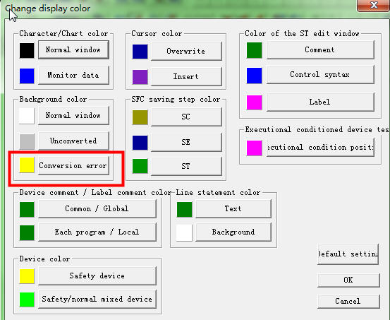 如果你沒有更改過默認的背景顏色,那么出現黃色不是一件好事情啊,那代表梯形圖轉換錯誤。