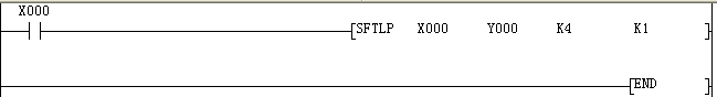 因為你的SFTL指令的執行條件為常閉觸點,且你的SFTL指令為脈沖指令,因此它僅在X001接通時執行1個掃描周期。